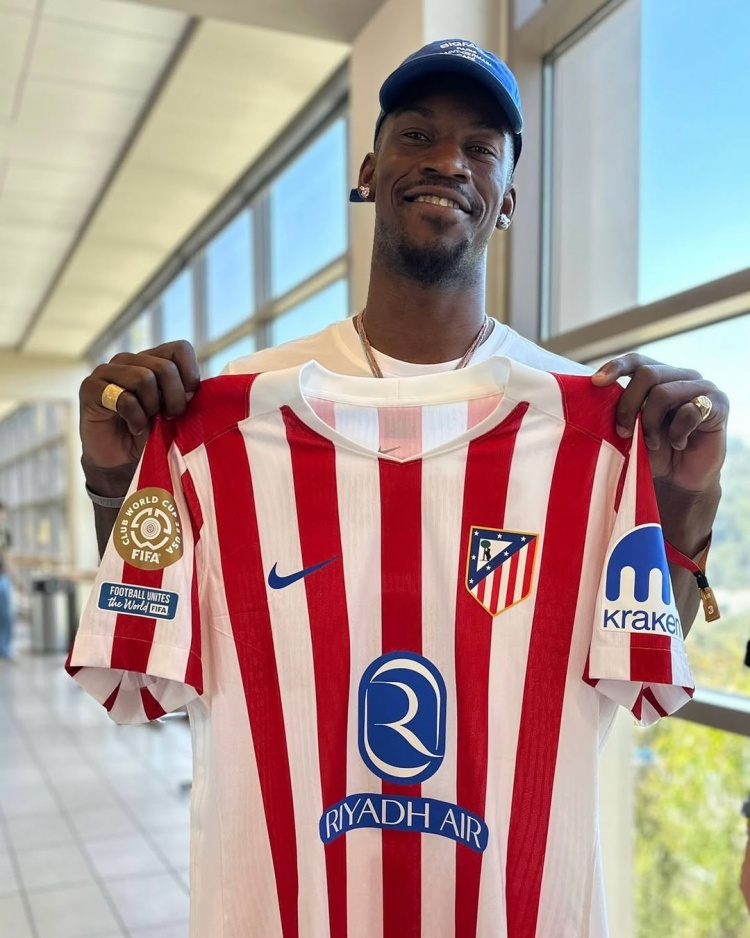 “在第一顺位,马竞选中吉米-巴特勒。”马竞官方IG在图片旁边调侃。